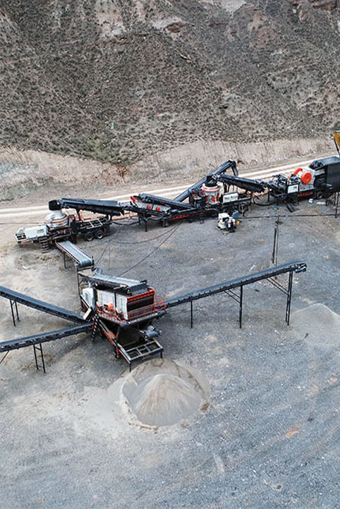 Process FlowThe process consists of two sets of mobile crushing plant with tires···